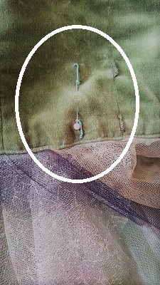 ムシを作るときに、まち針で印をしたり (↓こんなふうに)、