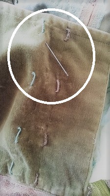 縫い終えたあと、ちょっとのつもりで針を置いたり (↓こんなふうに)