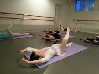 今日のクラスでは、バー・オーソル(フロアバレエ)。