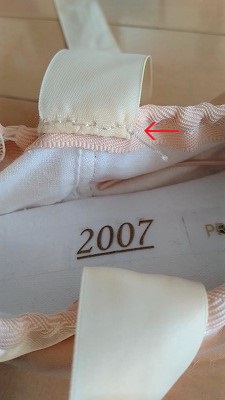 縫い付けの位置もかかとの方に寄せます。